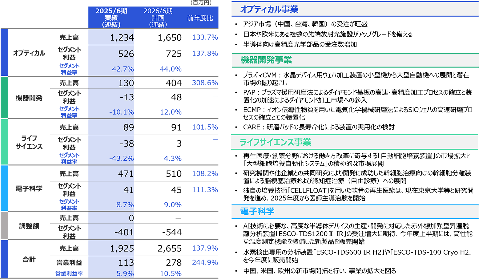 2026/6期 業績見通し:セグメント別見通しのサマリー、計画のポイント